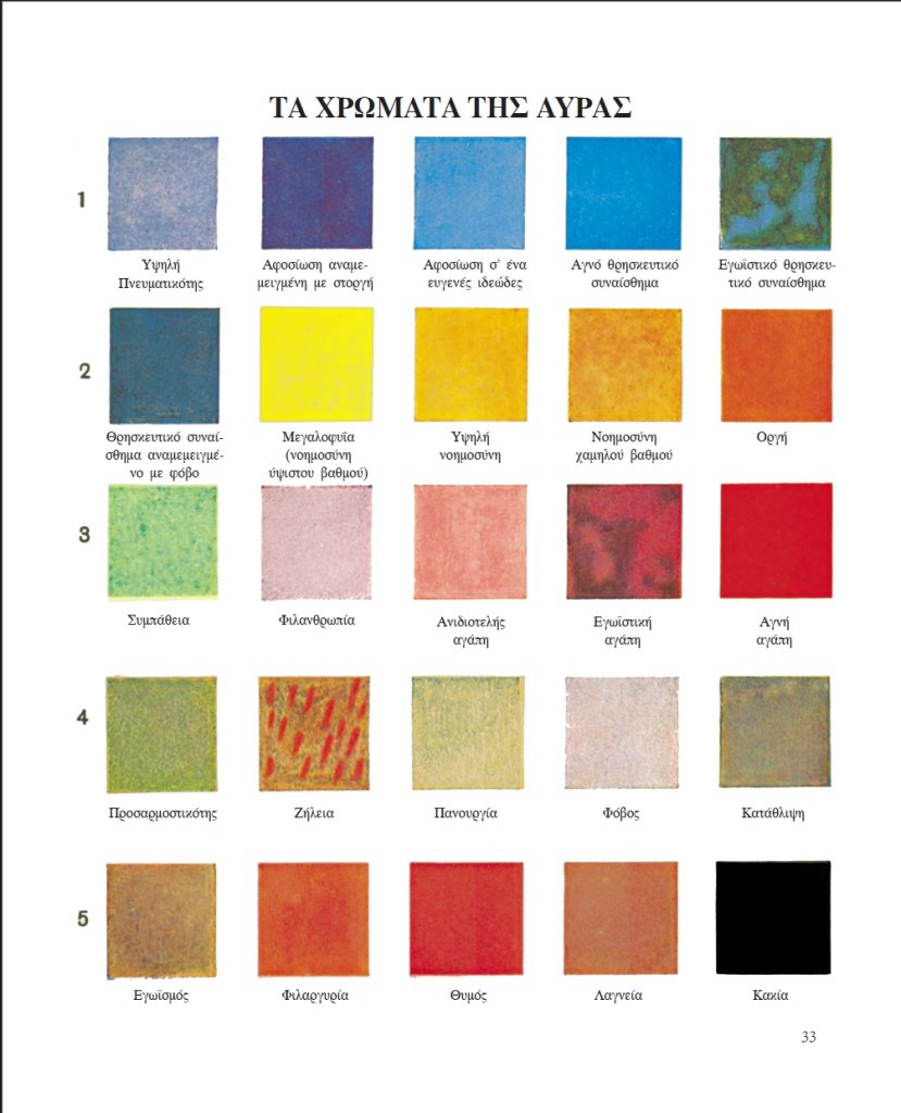 Τα ψυχικά κέντρα ή Τσάκρα (chakras) είναι οι δίαυλοι της ψυχής προς τους ανώτερους κόσμους, είναι οι ''πύλες'' με τις οποίες είναι εφοδιασμένο το ανθρώπινο ον ώστε να επικοινωνεί με το αόρατο. Η ερμηνεία των χρωμάτων της Αύρας · Τα χρώματα των Τσάκρα, όπως εμφανίζονται στο Αιθερικό επίπεδο · Η έγχρωμη απεικόνιση του Αστρικού και του Νοητικού σώματος · Η έγχρωμη απεικόνιση των συνειδησιακών καταστάσεων Θυμού, Απελπισίας, Αφοσιώσεως και Θρησκευτικής Εκστάσεως, έτσι όπως προβάλλονται από το Αστρικό σώμα · Τα Ρεύματα των Δυνάμεων και οι έγχρωμες απεικονίσεις τους · Το Οφιοειδές Πυρ (Η Κουνταλίνι) · Ζωτικότητα και Μαγνητισμός · Οι Ψυχικές Δυνάμεις · Οι Αστρικές Αισθήσεις · Το Αιθερικό σώμα · Τα Συμβολικά σχήματα των Τσάκρα · Αποτελέσματα του Διαλογισμού πάνω στα Τσάκρα · Αφύπνιση και `Ανοδος της Κουνταλίνι · Οι κίνδυνοι της πρόωρης Αφύπνισης ·