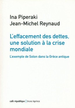 J’aimerais vous informer de la sortie de mon tout prochain livre, inspire d’un philosophe et legislateur grec, «Solon», co-ecrit avec Jean-Michel Reynaud: « L’effacement des dettes, une solution a la crise mondiale. L’exemple de Solon dans la Grece antique » Ou il est traite, a travers l’exemple de Solon (VIe siecle avant notre ere), pere de la democratie et de la premiere constitution au monde, de l’annulation partielle ou totale des dettes publiques et privees comme une solution pour sortir de la crise.
